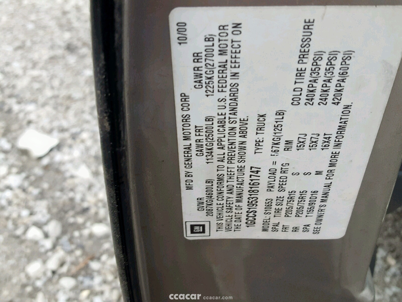 | Vin | 1GCCS19531******* |