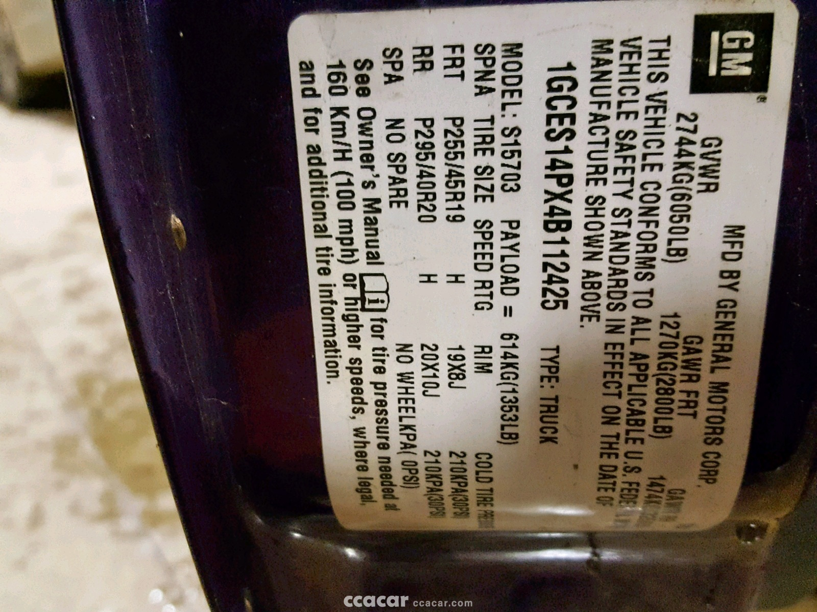 | Vin | 1GCES14PX4******* |