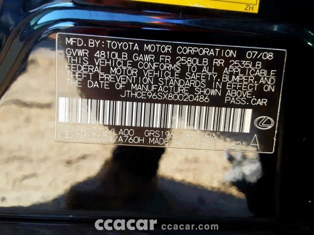 | Vin | JTHCE96SX80020*** |