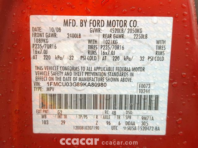 | Vin | 1FMCU03G89KA80*** |