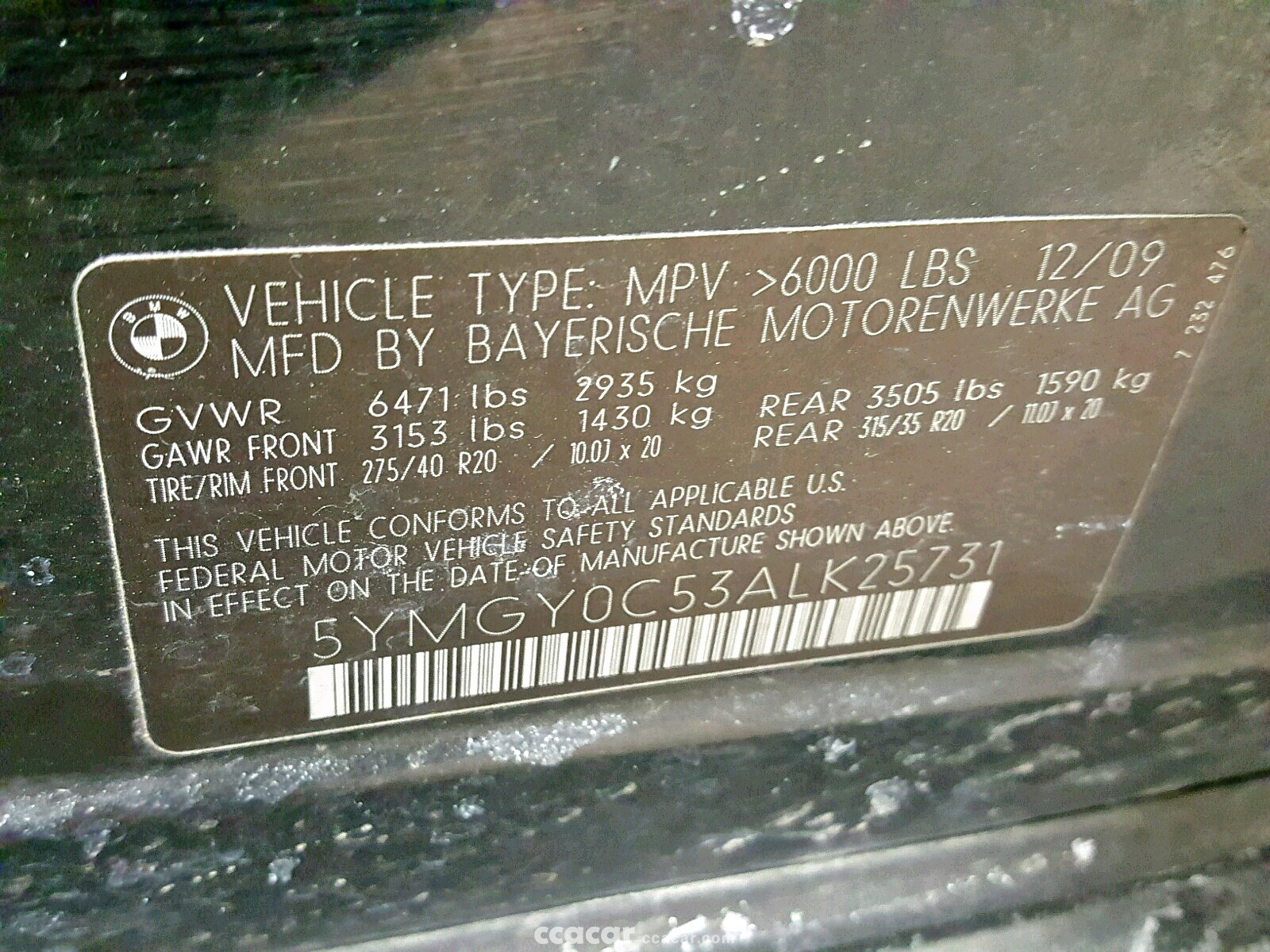 | Vin | 5YMGY0C53A******* |