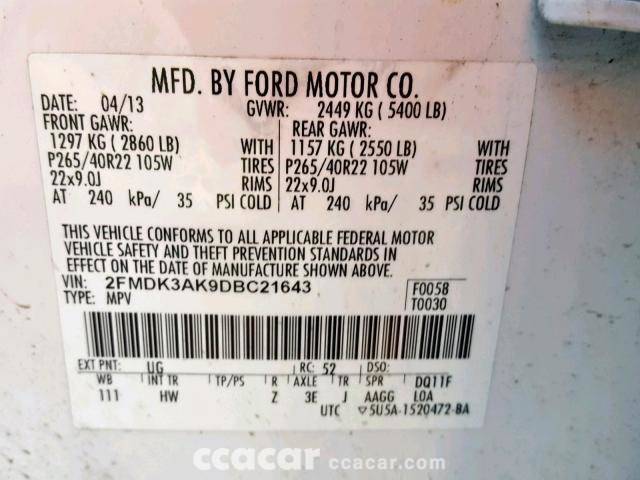 | Vin | 2FMDK3AK9DBC21*** |