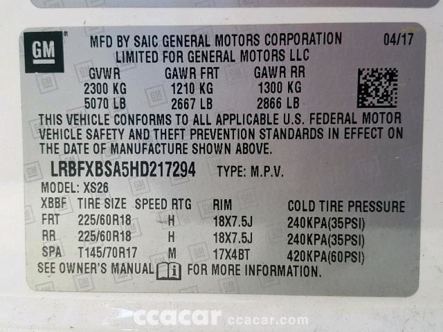 | Vin | LRBFXBSA5HD217*** |