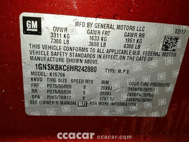 | Vin | 1GNSKBKC8H******* |
